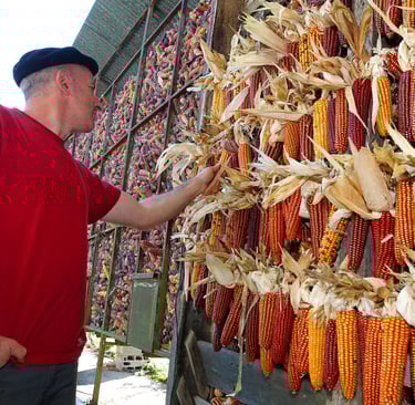 Pourtant, dans les années cinquante, l’introduction de variétés de maïs hybride cultivés pour l’alimentation animal, plus productive l’a fait quasimment disparaître. Dans les années 90 Jon Harlouchet est allé chercher des épis de maïs grand Roux dans un couvent du Pays basque sud et en a ressemé les graines. Le Grand Roux Basque était de retour au pays !